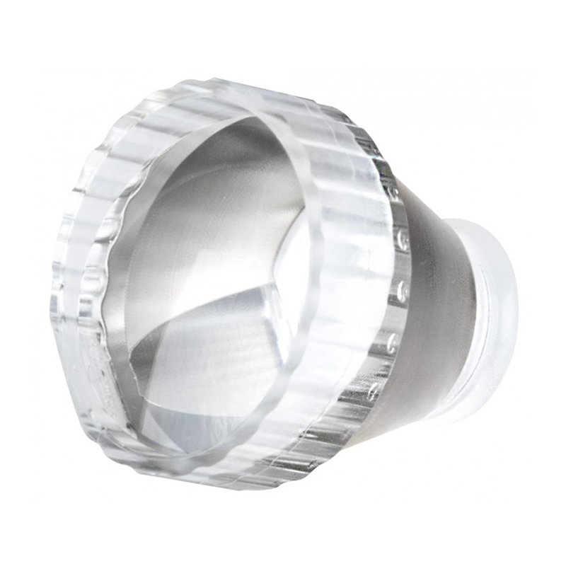La superficie superiore della lente curva assicura che il profilo del raggio laser rimanga circolare per un posizionamento coerente del laser. L'elemento di contatto flangiato in silicone è progettato per essere utilizzato con il fluido di accoppiamento per garantire stabilità e sicurezza per l'erogazione del laser.